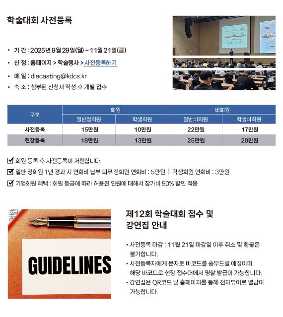 아래와 같이 제 12회 한국다이캐스팅학회 추계 학술대회를 개최합니다.