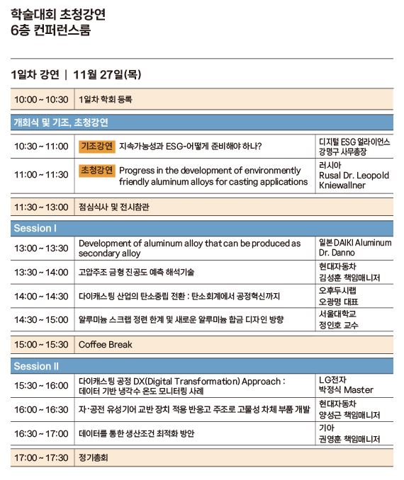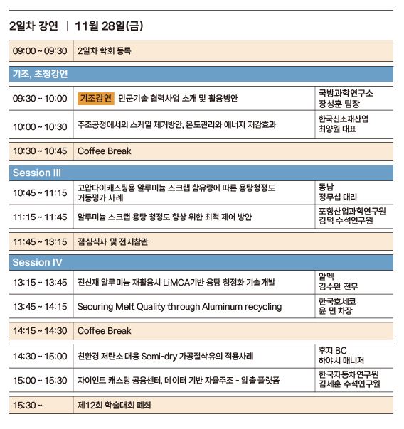 일정 별 학술 발표 및 기술 강연은 아래와 같습니다.